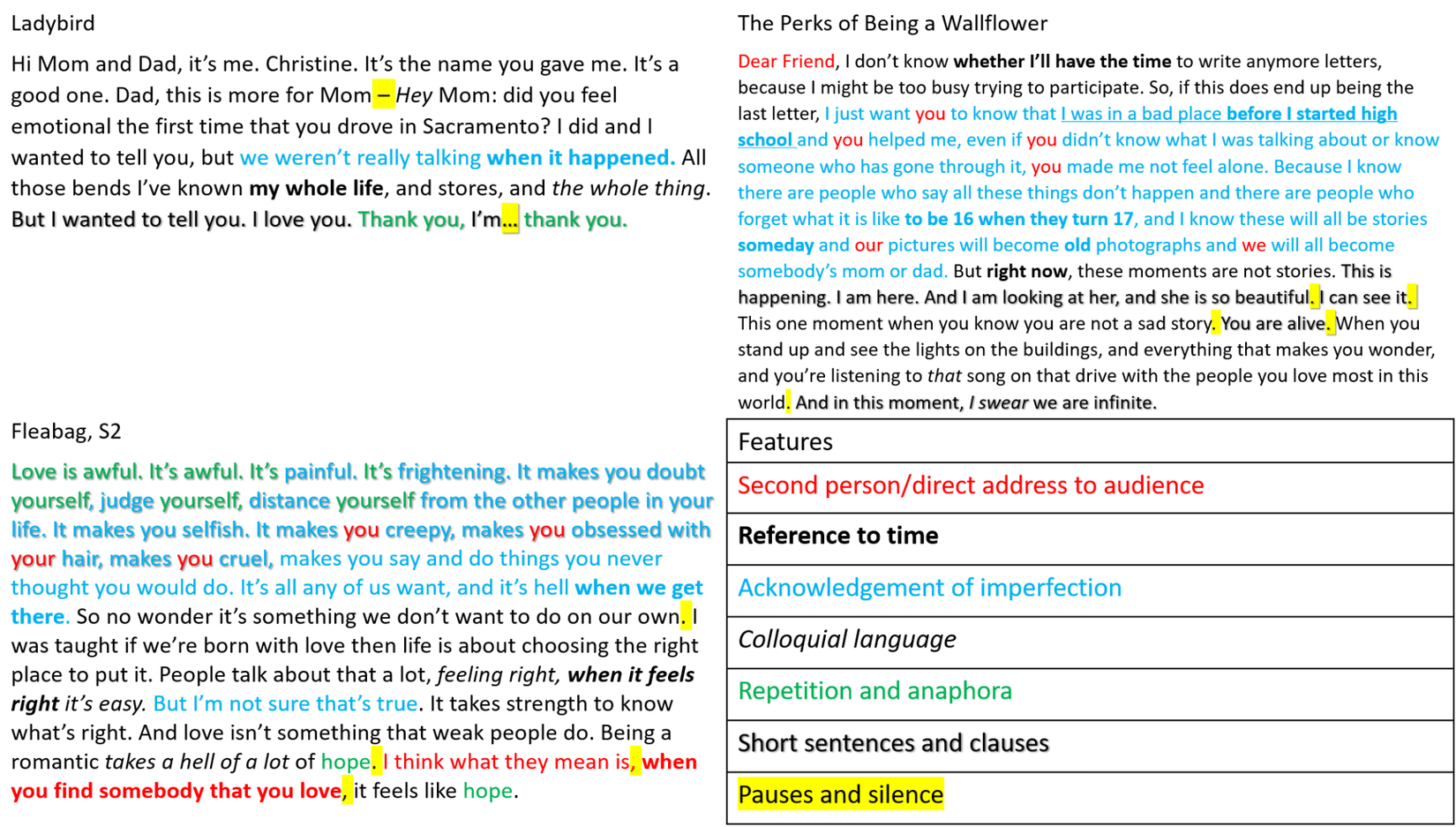 The screenplays that I took inspiration from are: Ladybird, The Perks of Being a Wallflower, and Fleabag, Season 2